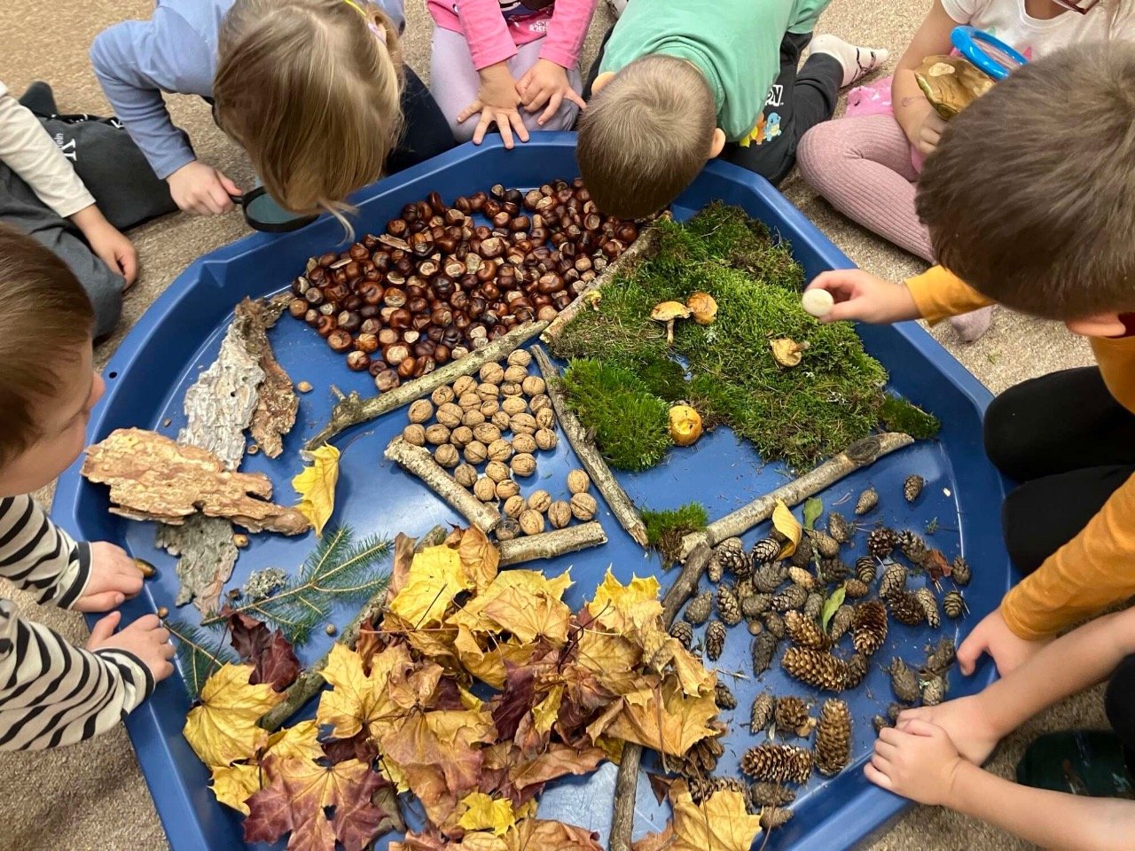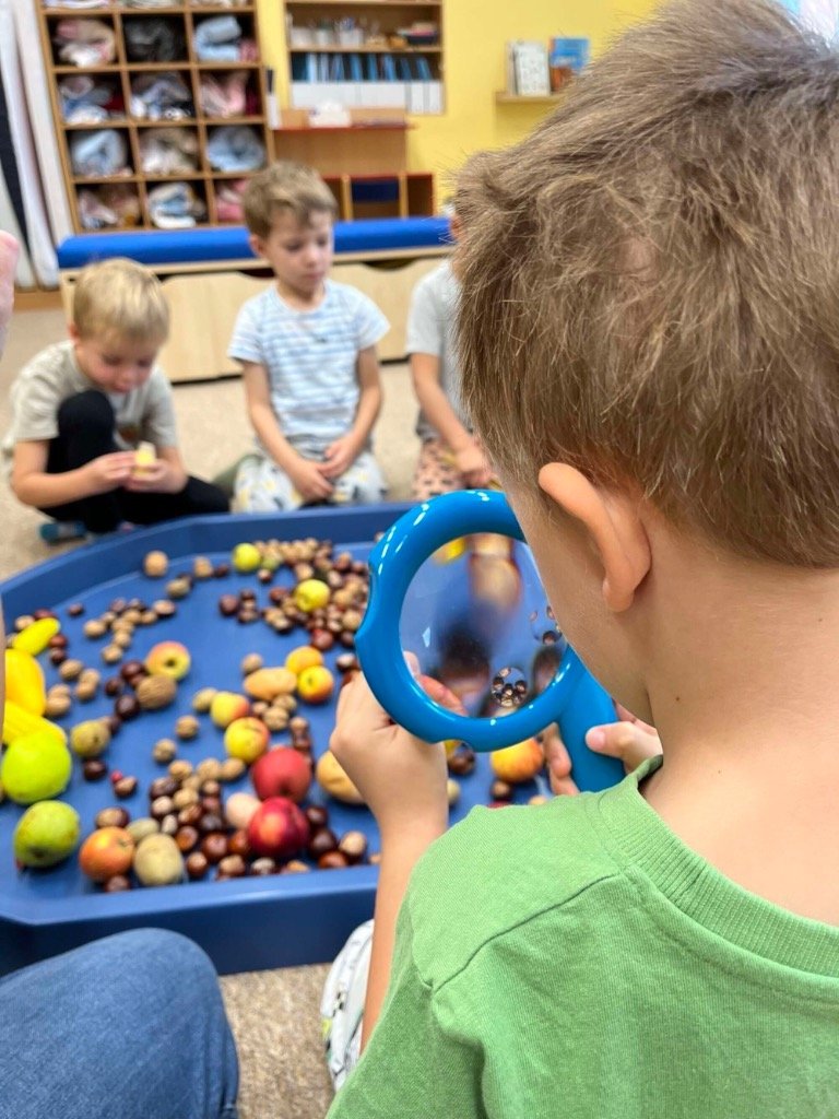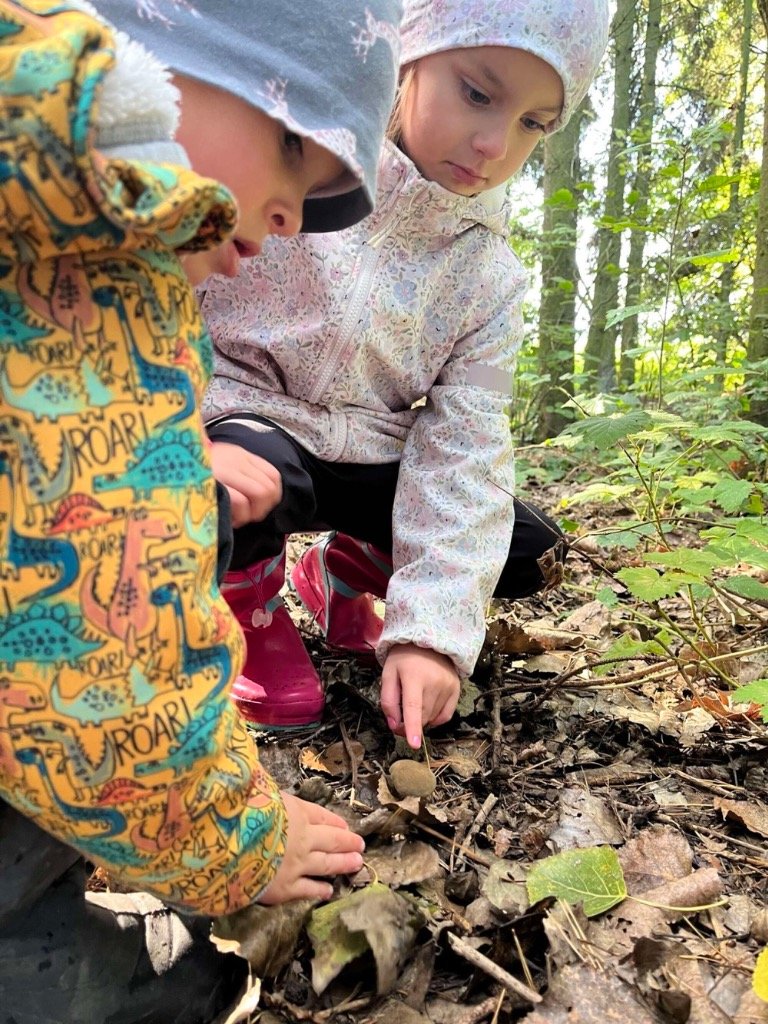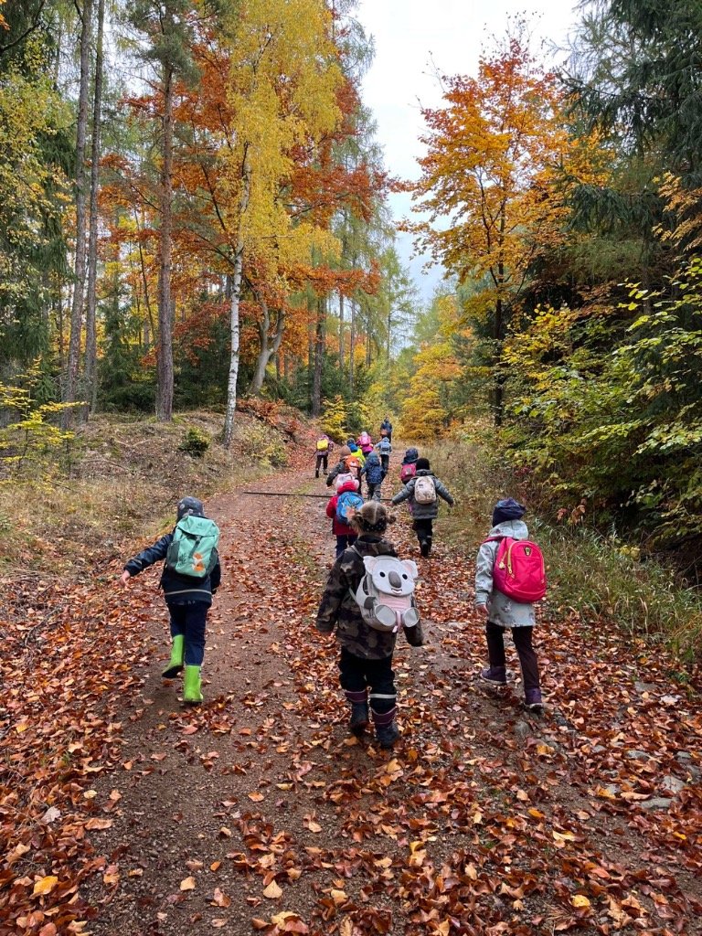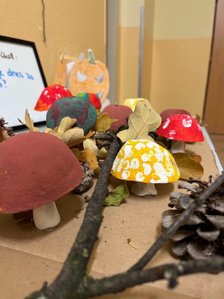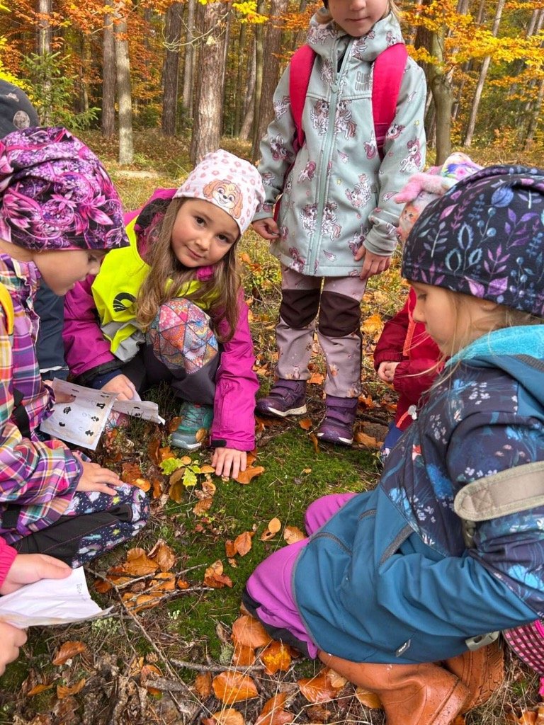 V uplynulém týdnu jsme se v MŠ podívali blíže na téma hub. Začátkem týdne se děti s využitím digitálních zdrojů seznámily s lesem, do kterého jsme se v čtvrtek 23. 10. společně vydali. Cílem se nám stalo hledání hub a vhodných míst, na kterých by se mohly nacházet. Pátek jsme zakončili zkoumáním lesních přírodnin a tvorbou smyslového chodníčku.