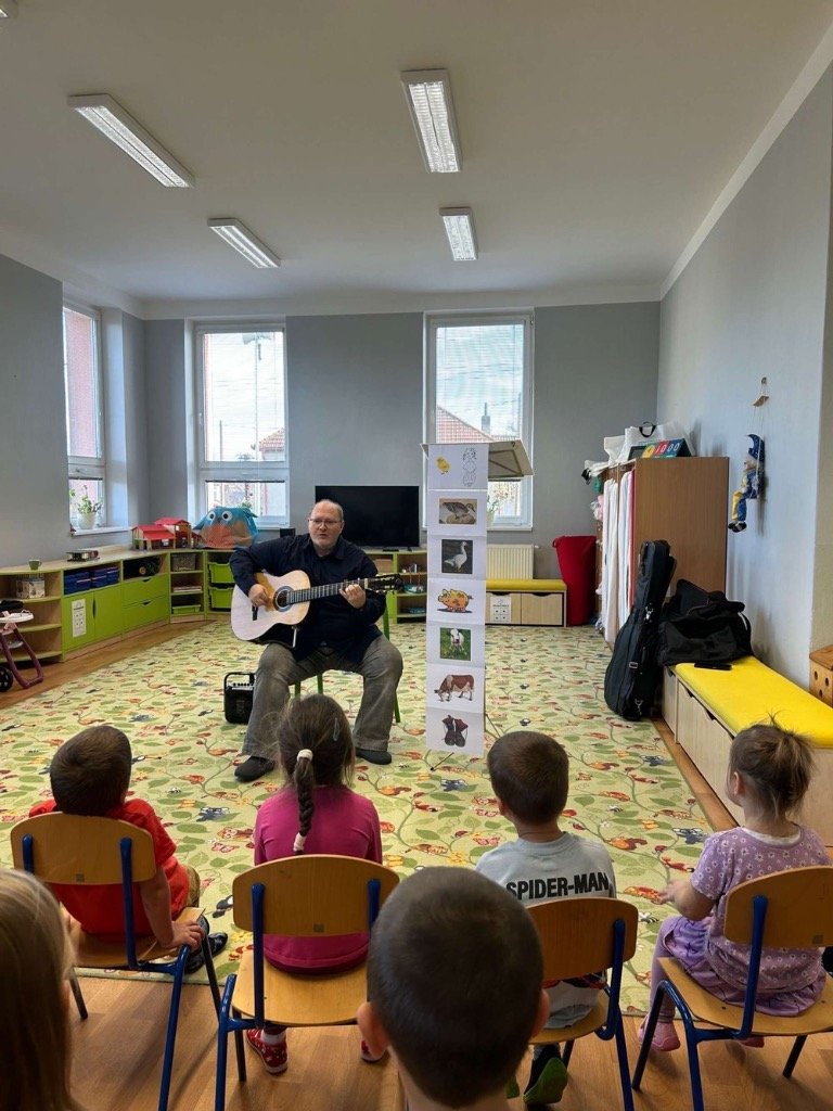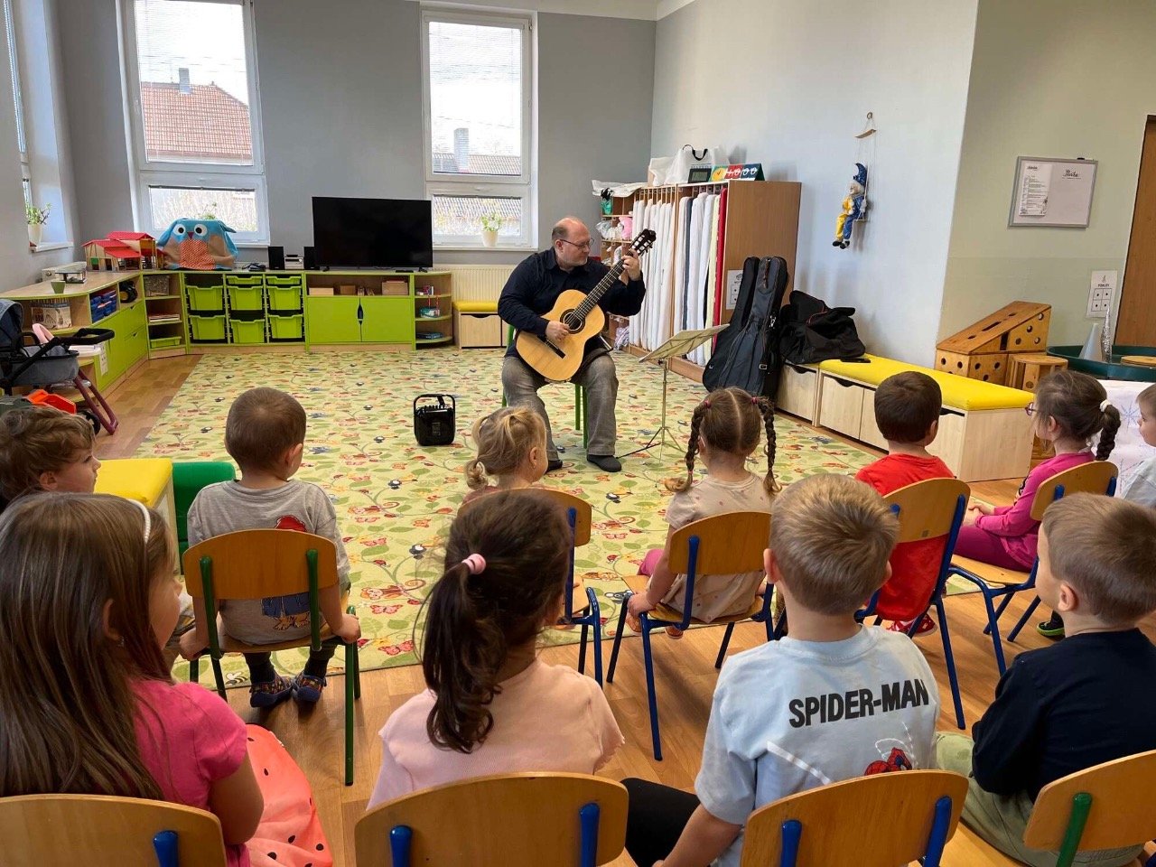 Ve středu 12. 11. 2025 se v MŠ uskutečnil již tradiční kytarový koncert, v rámci kterého mohly děti naživo vyslechnout různé hudební styly a způsoby hry na kytaru. Nechyběl ani společný zpěv a tanec.
