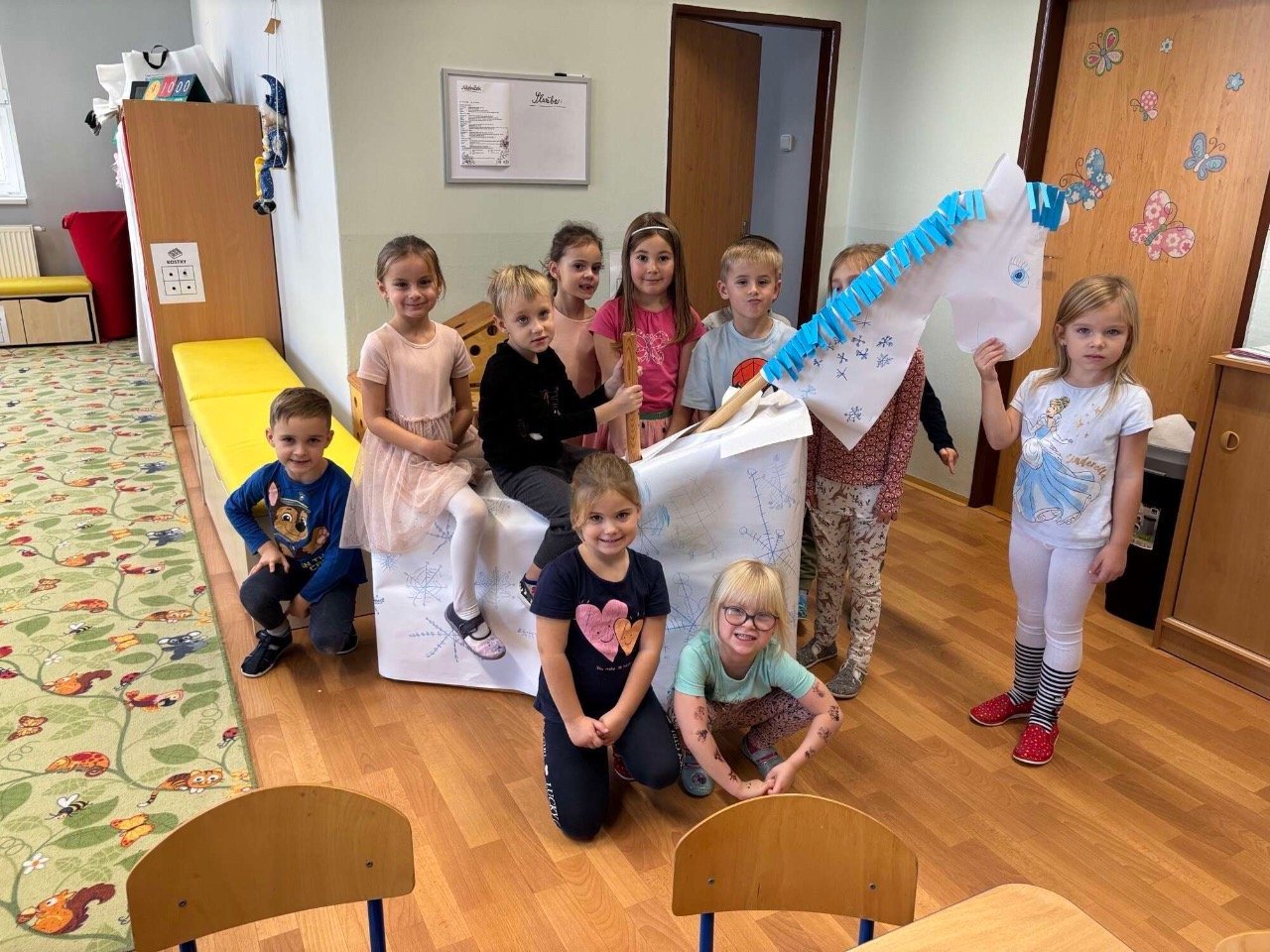 Ve středu 24. 9. 2025 se děti z MŠ Drozdov vydaly autobusem na výstavu do Strahovského kláštera. Právě v prostorech kláštera připravila Česká televize unikátní výstavu k 60. výročí pořadu Večerníček. Děti měly možnost potkat postavičky v životní velikosti, podívat se, jak vypadá scéna při natáčení večerníčku či vyluštit nejednu z hádanek a úkolů, které na výstavě čekaly.